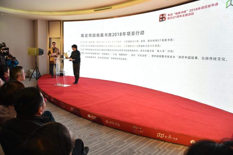在其一周年的“生日”也是2018年项目的发布会上,嘉定区委常委、宣传部部长顾惠文翻开“喜阅•我嘉”书本,将菊园2018年度“我嘉书房”项目行动一一呈现在大家面前: