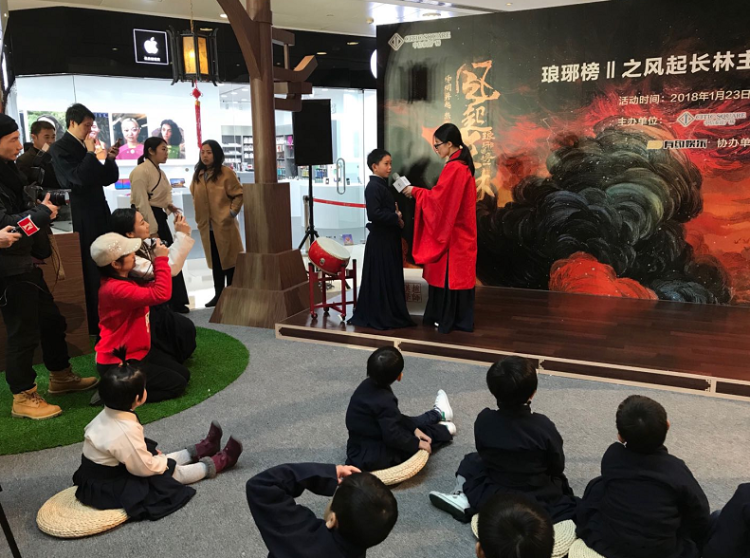 1月26日,十几位身着汉服的赵师汉学书院的小朋友们,在中信泰富广场《琅琊榜之风起长林》的原版场景中,完成了一次别开生面的剧场版开笔礼。