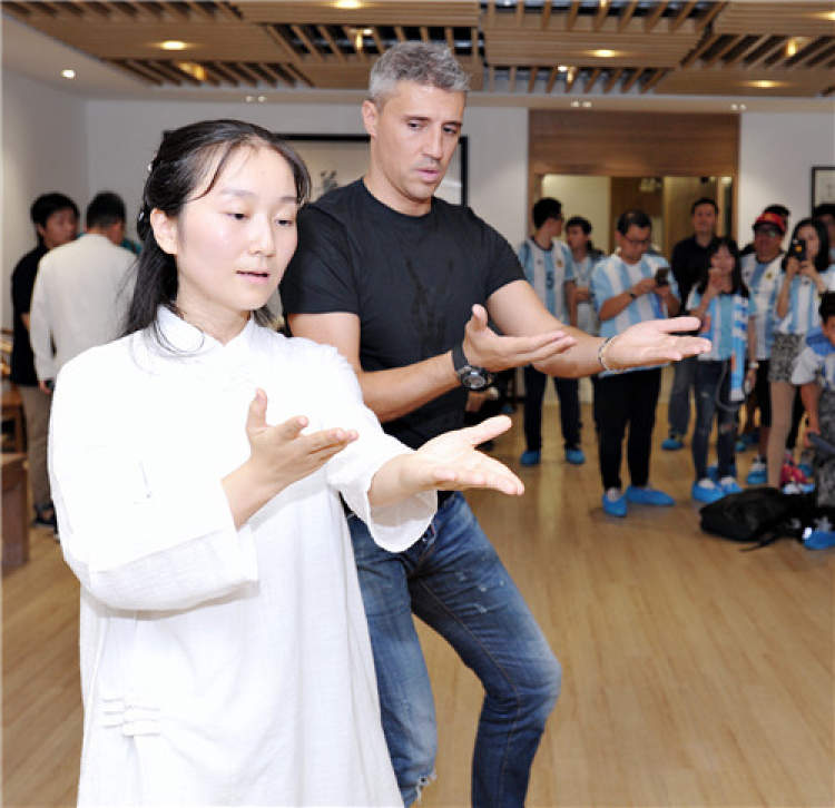 ■世界著名足球明星、前阿根廷国脚克雷斯波Crespo上海首站跟随陈佳学习传统陈氏太极拳