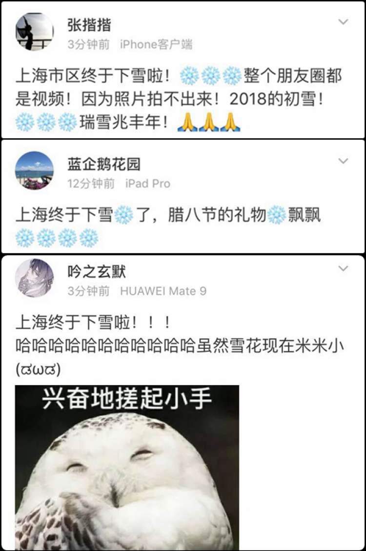 令魔都人民朝思暮想、日夜期盼的初雪终于来啦!