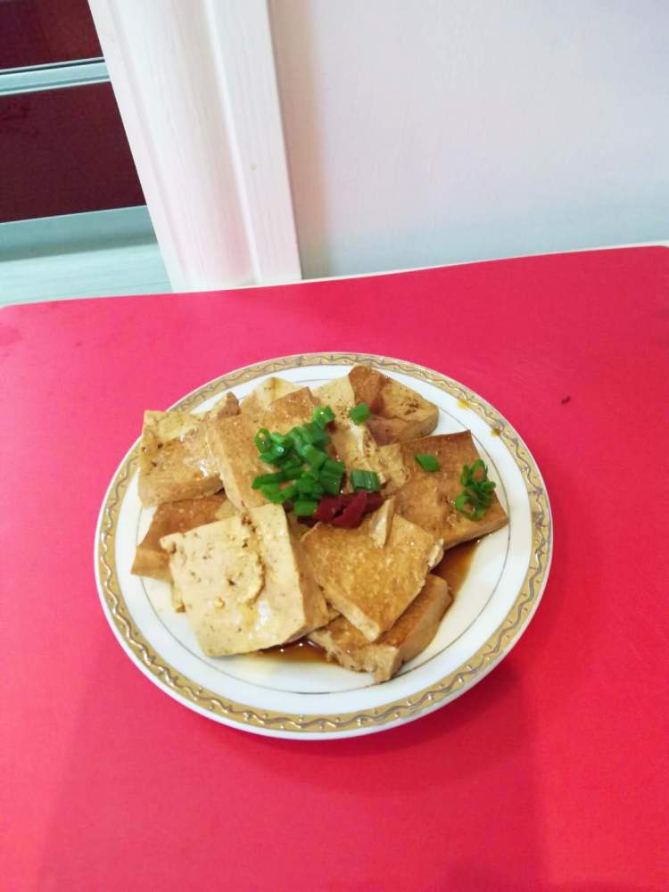 3.水磨豆腐洗净,通过红烧的方法烹饪10分钟。