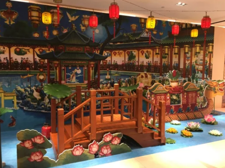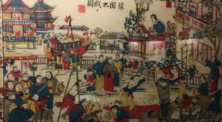 本次展览共分为五大展区,豫园华宝楼艺术空间向公众展示了四十四幅小校场年画的珍贵复刻本,其中包括了描绘百年前豫园市井风情的《豫园把戏图》。