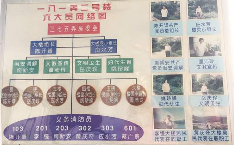 当年,应水芳建立的阳曲路181弄2号楼六大员网络图如今依然挂在该楼道里