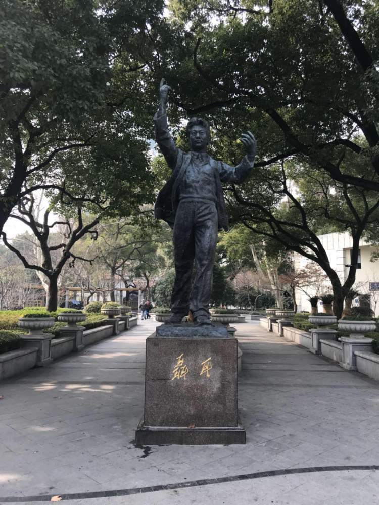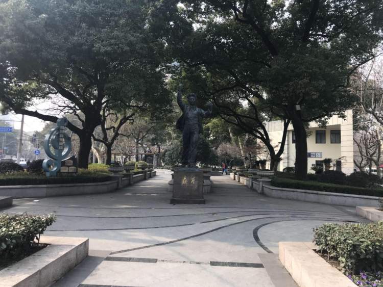 在复兴中路、淮海中路、乌鲁木齐中路三路围合成的三角街心花园里,国歌作曲家聂耳的青铜像便树立于此,小编那么爱走走玩玩的,也是第一次见!