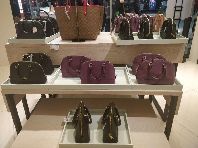 最值得买的是Coach和Michael Kors这两个轻奢品牌,不少包包折扣在3-5折之间。进门看到的第一个展台都是3折,常规款式的大号Coach包折后只要1400元。