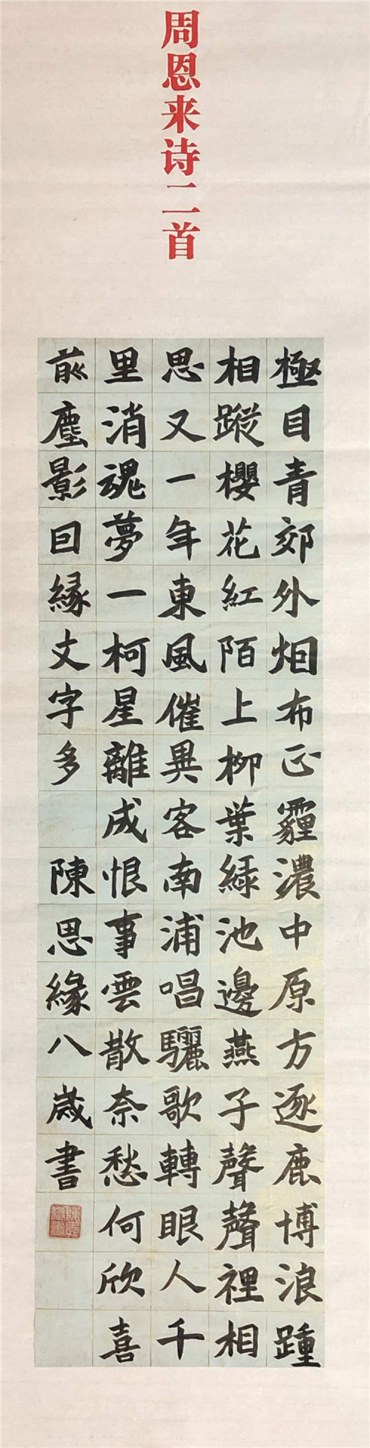 现在,大大、小小每天早上大概练习20-30分钟毛笔字。“这样每天练习,他们的手感能够熟一点。我也会跟他们讲,书法就像吃饭、睡觉一样重要。让他们建立起这样一个想法——学习这件事,其实和吃饭睡觉一样重要。偶尔早上来不及写,就晚上补。因为我自己是学画画的,就很清楚,书画类的东西,手一生,明显就会差很多。”