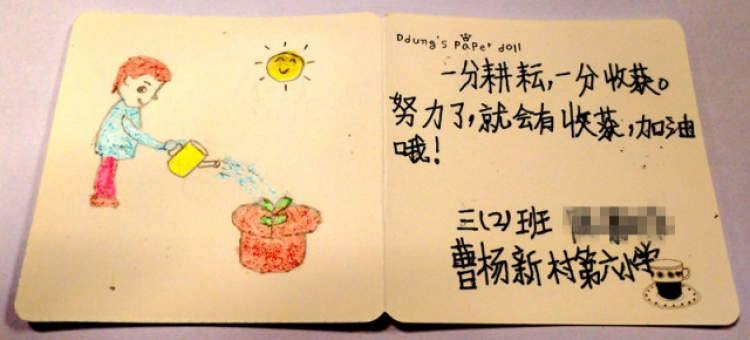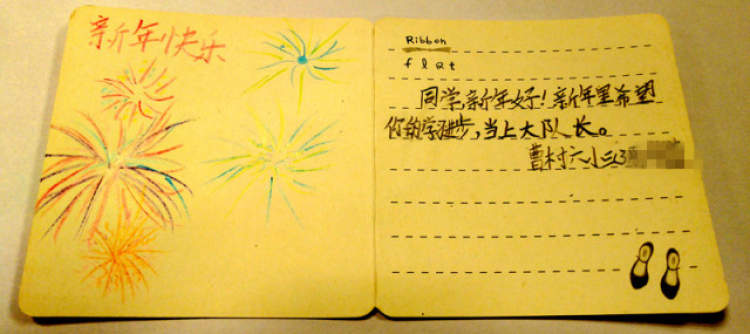 有个山区孩子收到贺卡后
