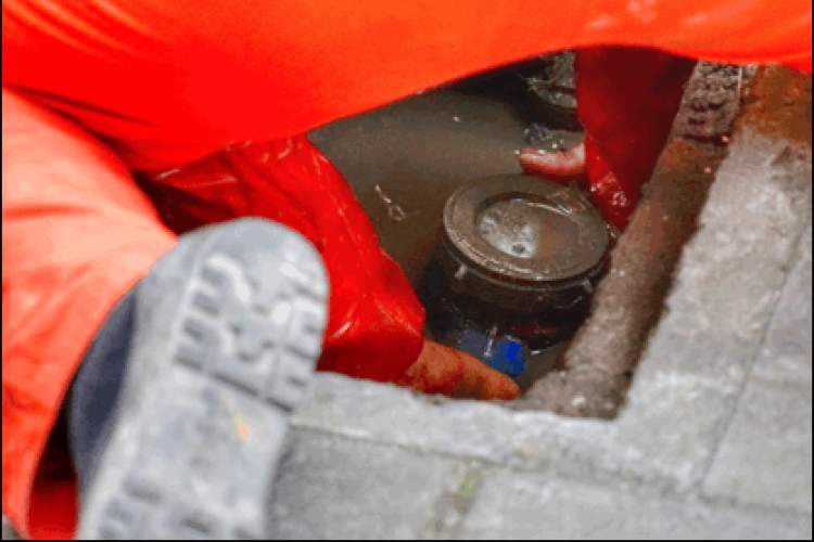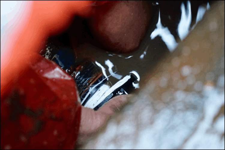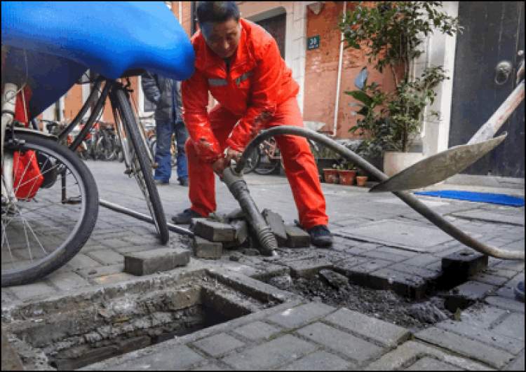 ■室外气温接近零摄氏度,卞师傅徒手伸进冰冷的水中开始修理管道