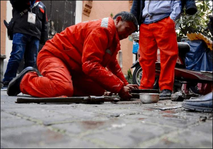 ■“冻手哥”开始修理管道