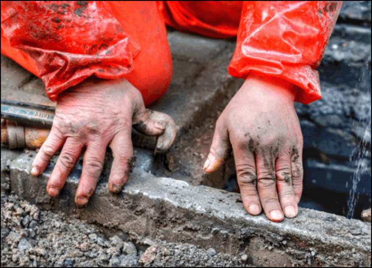 刚刚退下来的“冻手哥”在一旁稍事休息,并用最简单的紧搓两手来回暖麻木冻僵的双手,而刚刚回暖的手,伸出来写满了沧桑感:手心和手指间布满厚厚的老茧,手背上伤痕累累,指甲间还留着泥土、灰尘、铁器残存的黑色沟痕。看过两手,再陌生水电维修行业的人都会感受到这是位业内久经沙场的老战士。