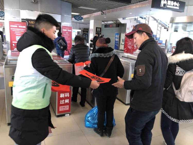 在虹桥机场T2航站楼和虹桥火车站,新虹街道邀请上海市吴昌硕艺术研究协会的8位书法家现场摆摊,泼墨挥毫,将春联和福字送到往来的旅客手中。这份美好的祝福也将与这些归国探亲侨眷、归家心切的学生、外出旅行的家庭一道飞向各地。活动现场还设置了极具年味的合影相框供旅客合照留念,还有一直自发组建的民间艺人志愿者团队,用古筝表演、剪纸、草编、福字绣球、捏面人、糖画、五彩香包制作等方式,将充满着浓浓年味的民乐和手工艺品分享给大家,用快乐和祝福温暖他们的回家之路。