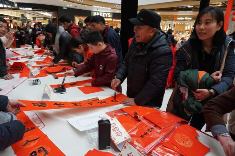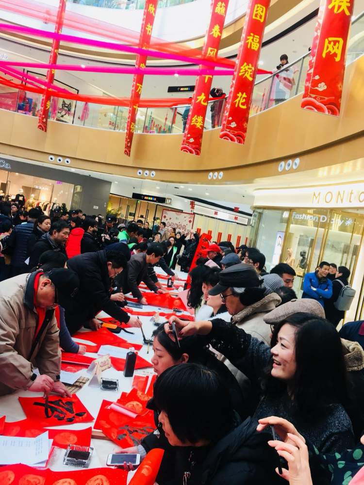 颛桥万达广场作为本次活动的主会场,区书法家、社区书法爱好者和春联宝贝们50人挥毫泼墨,将一幅幅浸润墨香、饱含祝福、喜庆吉祥的春联和福字传递到参与活动的市民手中。事先准备的200多对春联,为基层优秀“三长”代表、上海市劳模代表以及“全国最美家庭”、“市五好文明家庭”等送上了最美好的祝愿。1000张大红福字,随着志愿者们来到颛桥、北桥地铁站向返乡的乘客们赠送福字,温暖一路归途。在田园邻里中心,社区书法爱好者们为高龄独居老人等送上春联和祝福,让他们感受社区大家庭的关爱。志愿者们还来到莘城中央公园、仲盛世界商城广场、莘庄地铁南广场,将春联和“福”字发放给路过的市民。