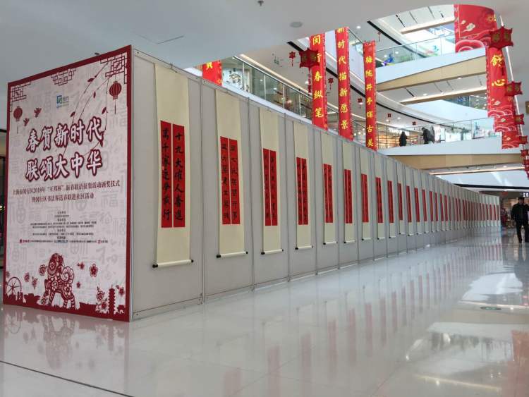各种主题鲜明、立意高远、内容多元、对仗工整的佳联妙对,为新时代的第一个春节带来了温暖和诗意。为将这些优秀的春联联语作品更好地记录保存下来,市、区两级65位书法家协力创作了65件春联书法作品并编撰成集,并在颛桥万达广场等活动现场面向广大市民进行了展出。