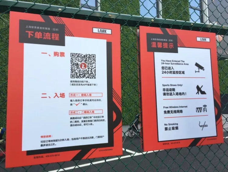在球场边的告示栏上,有着预约流程和二维码标志,周到君尝试着扫码购票。