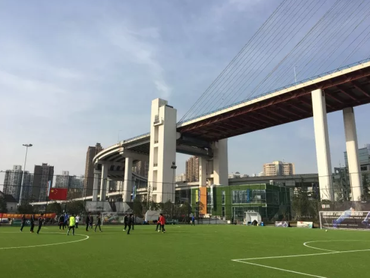 足球场位于外马路1353号,黄浦滨江南浦大桥下方,作为“世博黄浦体育园”的一部分,铺设有人工草皮的11人制足球场(可作2块场地8人制使用),看上去非常干净漂亮。