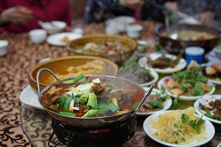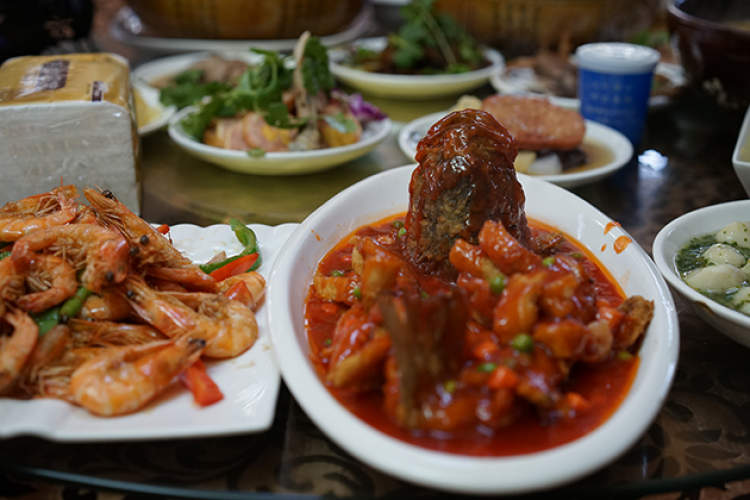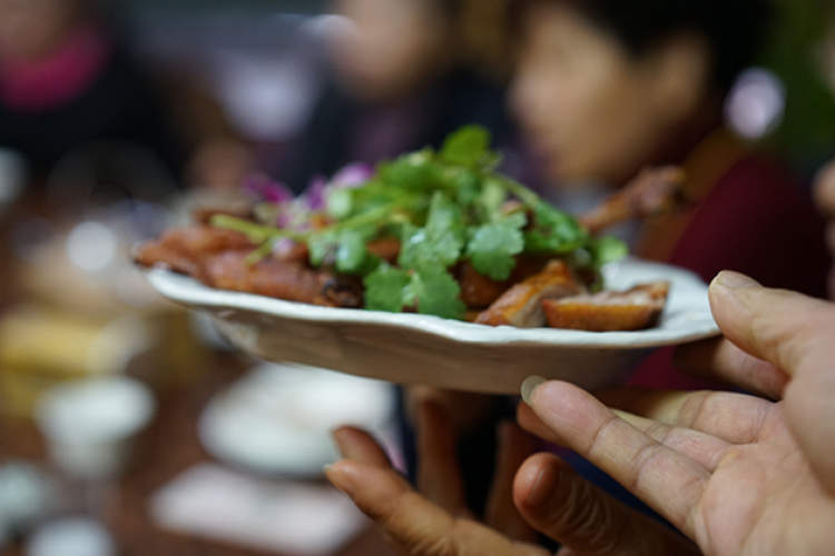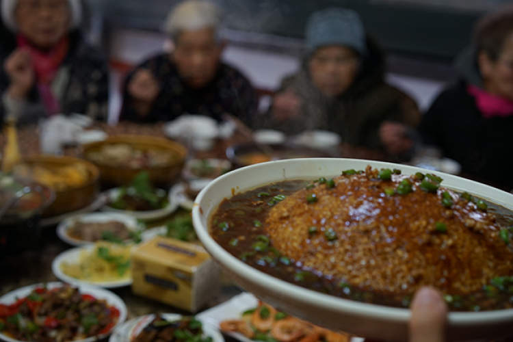 2月5日,俞迎春和妻子金女士为老人准备了春节团圆宴