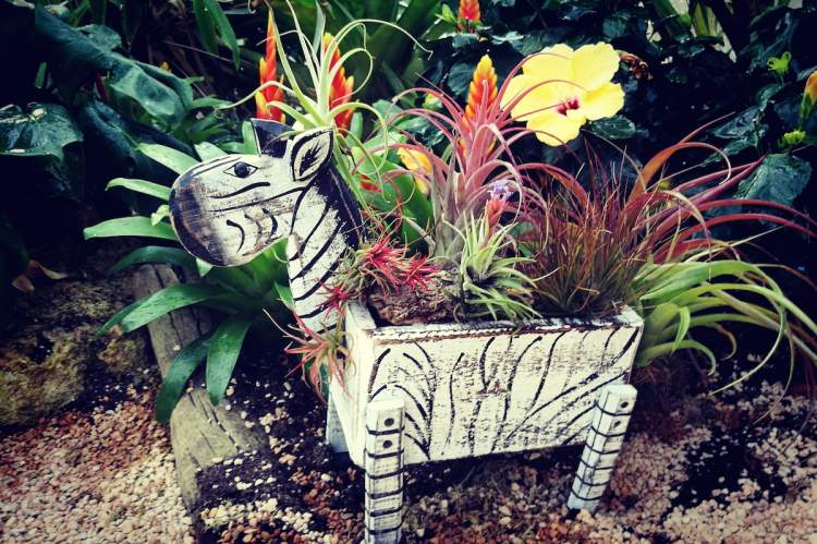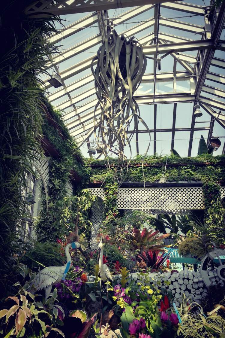 此次迎春花展在布展手法上也有所创新。设计师们充分利用景石、枯木等自然元素,配合空气凤梨独特的色彩进行艺术造型,采用捆绑或悬挂方式模拟空气凤梨原生境的附生景观,以展示其特殊的生活习性,还将富有童趣的各类卡通摆件及动物造型容器巧妙融入到景点内,增加了观赏的趣味。
