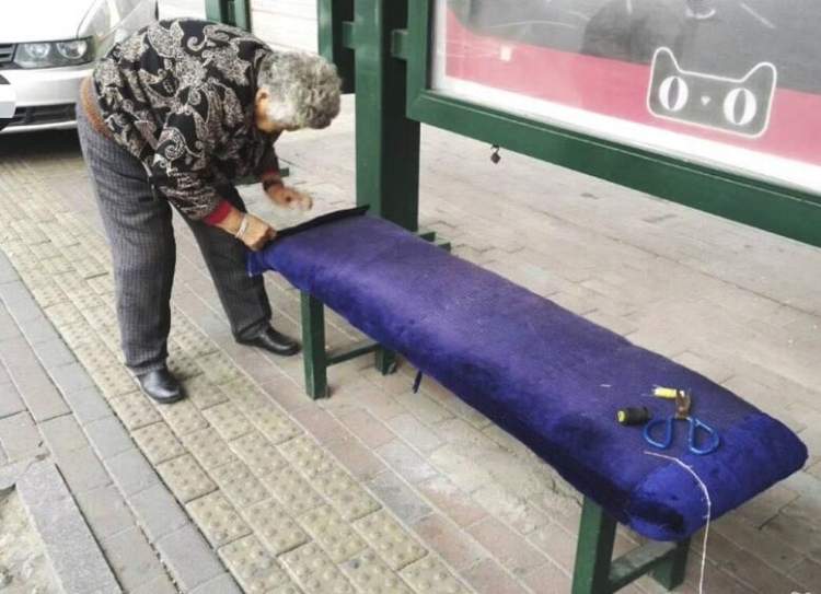 哈尔滨一84岁老人为公交长椅上穿棉外套,她说,在家里也没什么事情,这些都是应该做的。↑↑↑(图片来源于文明娄底)