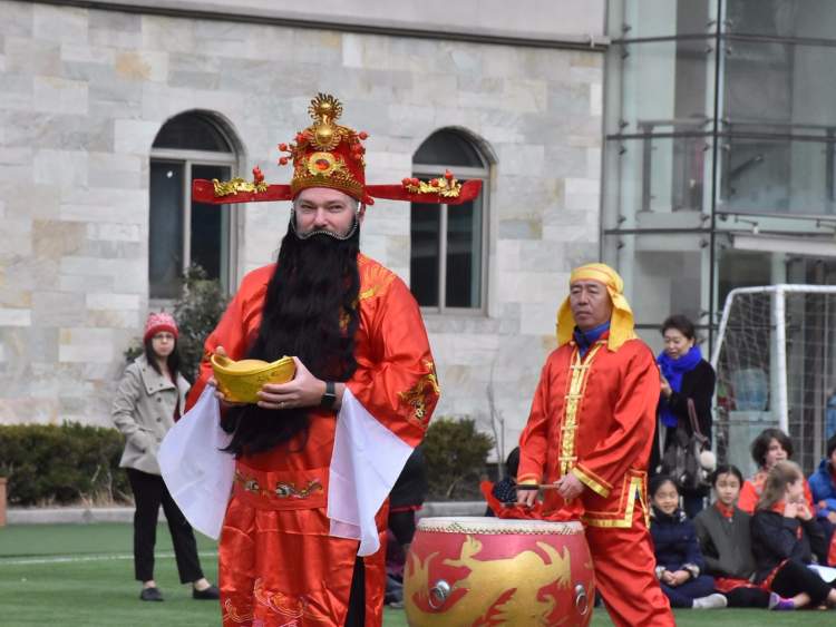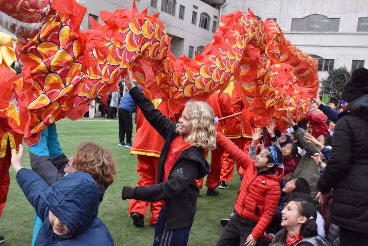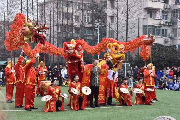 早上九点半,长宁国际学校操场上锣鼓震天,看表演的人里三层外三层。精彩的舞龙舞狮表演让外国小朋友们流连忘返。