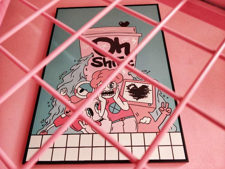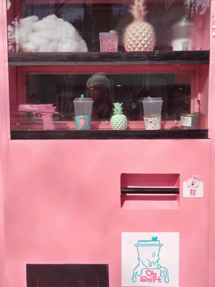 Oh ShiFt是另一家人气极旺的粉红茶饮店,粉色装饰,假双层结构,店里挤满了少女和外卖小哥。