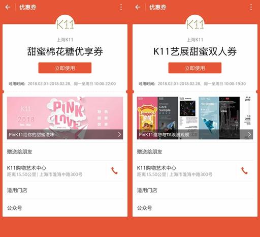 还不止棉花糖,成功通关还会赠送K11艺展甜蜜双人券,但最多送一张。