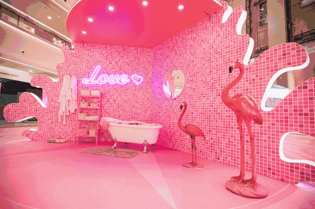 今年新年,把“粉红”定为主题色的有K11和爱琴海购物公园两家。在这两家商场里,你不仅可以遇见各种粉红的饰品,还可以和粉红来个互动。