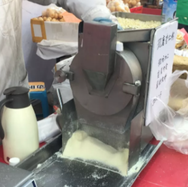 这家来自杏仁露的家乡——河北承德的展位前,正在进行的是现磨杏仁粉,一股甜香的杏仁味飘逸在空气中,让人不禁咽口水,来品尝一杯现做的杏仁饮料吧。