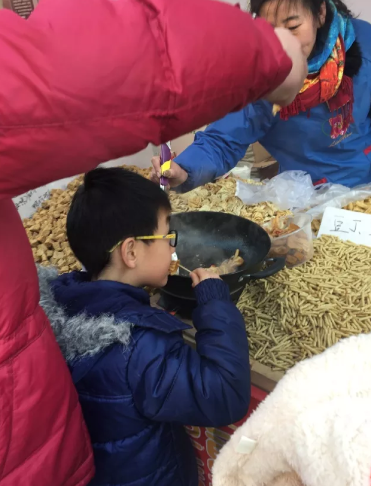 要数哪家生意最好,那非来自苏北的豆干豆皮展位莫属,一群阿姨爷叔正在等待即将出炉的炒豆干豆皮,几番翻炒后,具有当地特色的豆干豆皮新鲜出炉啦,一旁的爷叔用牙签挑起一块豆干,立马塞入口中,随即露出一脸幸福的表情,咀嚼几下后,连呼三遍“米道好”。看,就连小朋友都迫不及待的把小手探入锅中,寻找着鲜美的滋味呢。