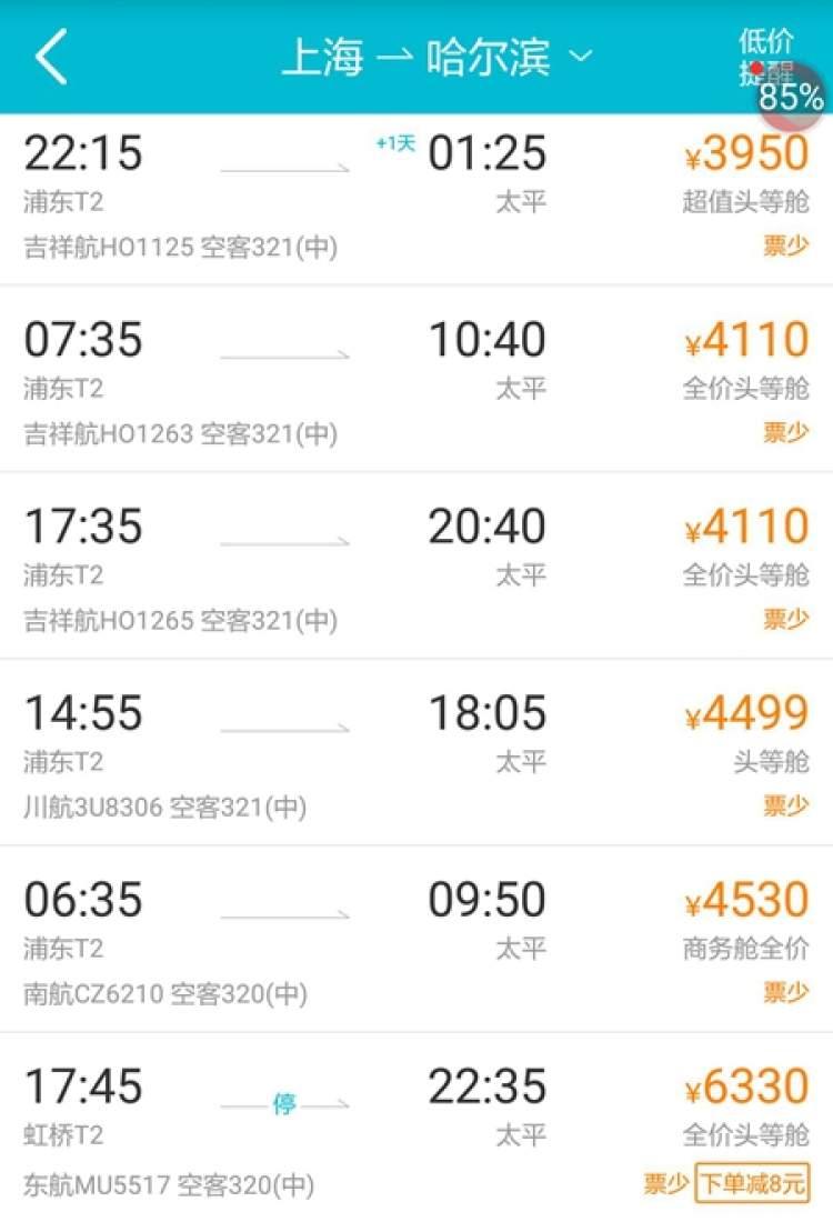 上海到三亚、哈尔滨等地机票价格成 “天价”