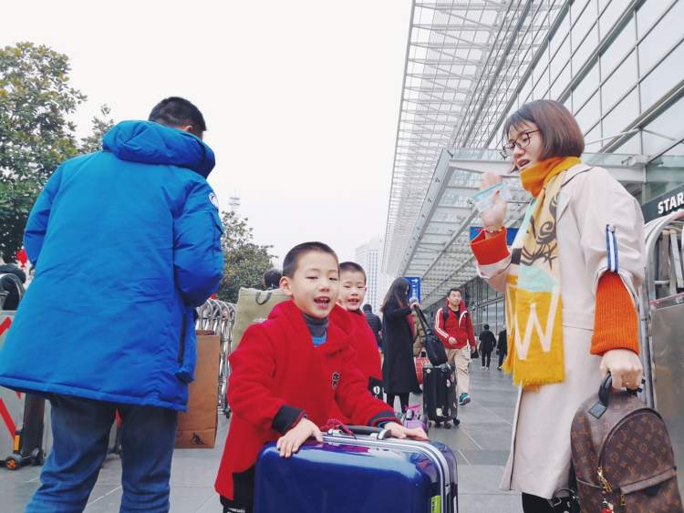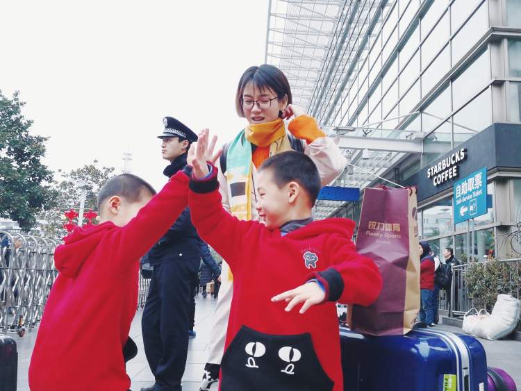由父母领着去广州看望爷爷奶奶的7岁双胞胎哥俩一路嬉笑打闹,好一个朝气蓬勃!