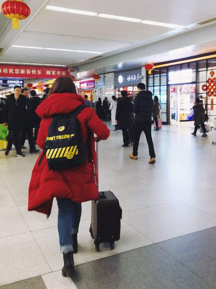 许多乘客中国红加身,欢欢喜喜迎新年。无处不喜庆,无处不团圆,满眼的欢笑和喜悦。