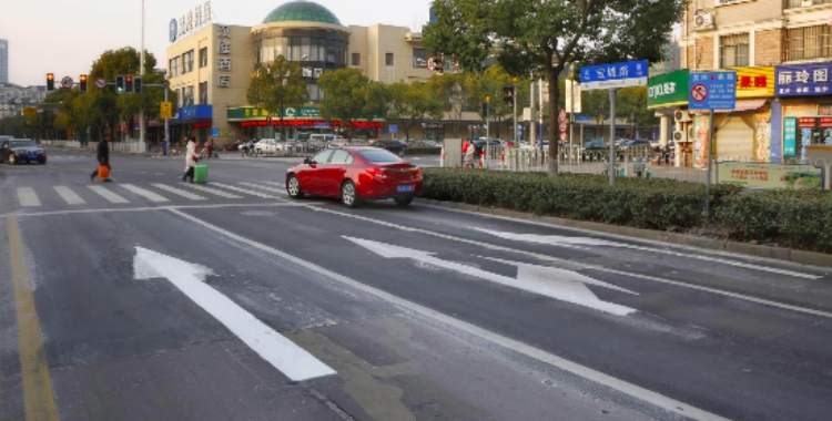 ■地面标线漆画一新,左转灯也调整至最右侧车道对应位置,交通秩序井然有序