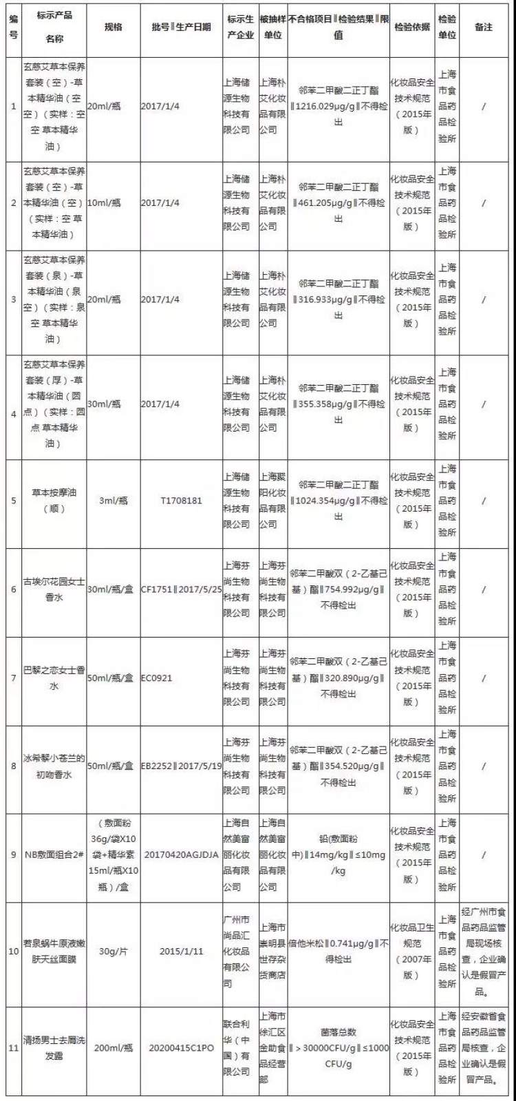 周到君看了一下名单,“玄慈艾草本保养套装”“冰希黎小苍兰的初吻香水”“若泉蜗牛原液内肤天丝面膜”“清扬男士去屑洗发露”等产品批次纷纷“中招”。