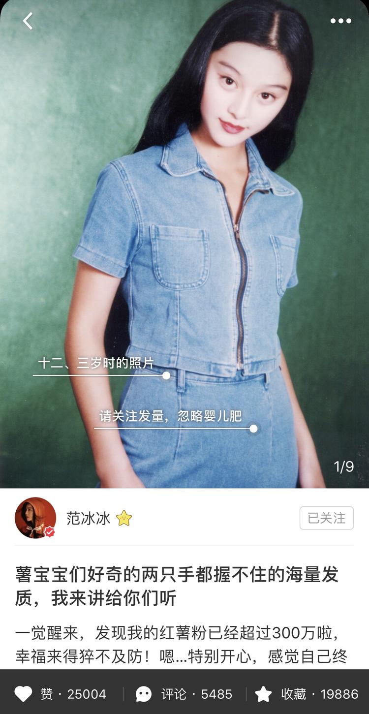 范冰冰女神昨晚在小红书晒出自己的青涩旧照