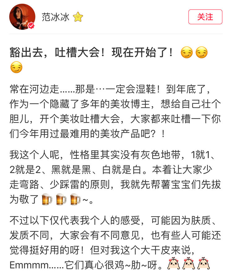 下面舞台交给这次美妆界“吐槽大会”的队长——白鼠冰!
