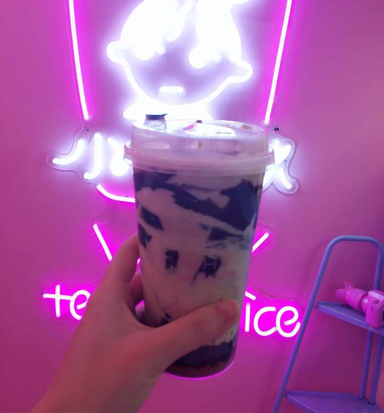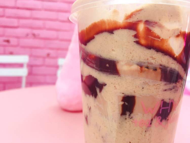 别看它颜值不在线,但味道确实不错。作为奶茶爱好者,周到君觉得这款脏奶茶的口味在魔都的网红店中可以排上前几名。而且对面就是一点点奶茶,人气也丝毫不输。店内招牌叫作“红酒蛋糕脏奶茶”,据说实现了“红酒蛋糕酱➕芝士奶盖➕奥利奥➕奶茶➕珍珠➕巧克力”的超值搭配哦。