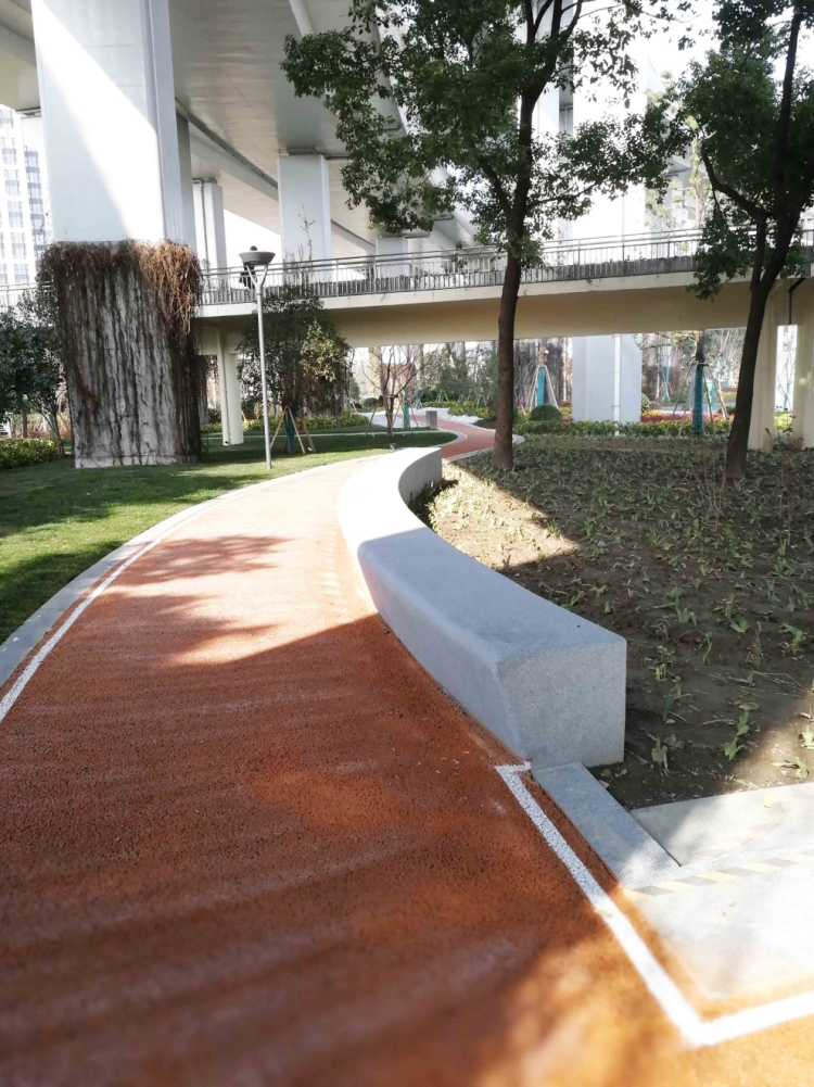 另外,周到君在每一块绿地中都发现有崭新的健身步道,喜欢运动的你可以来这里感受一绿树成荫下跑步的感觉,据了解,整个中环健身步道加起来足足有2.5千米呢。
