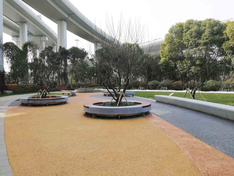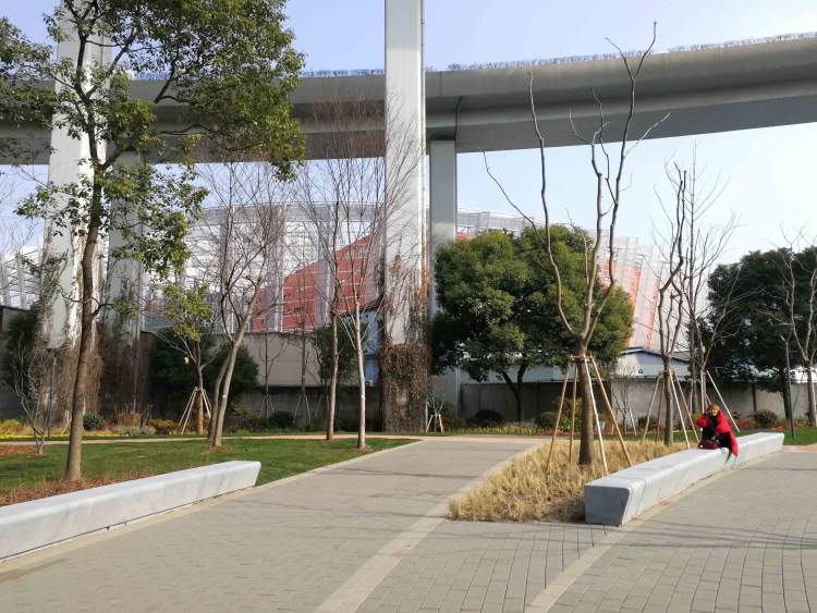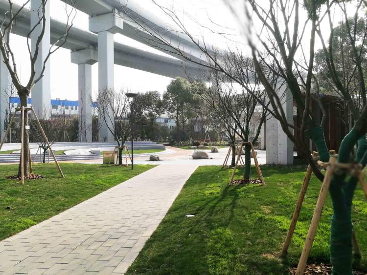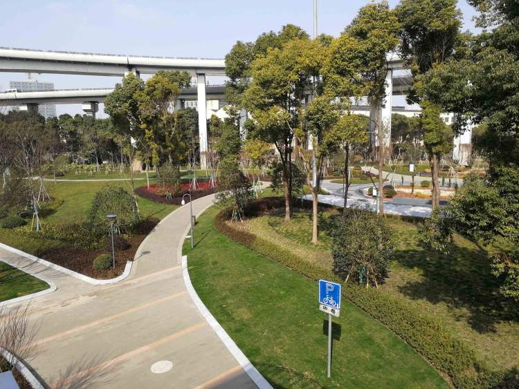 这就是周到君曾安利过的汶水路共和新路转盘交叉口的8万平中环绿地。