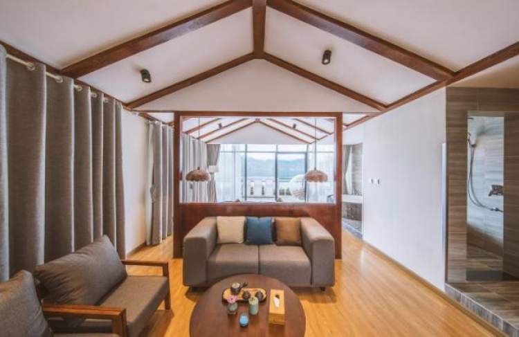 立于屋外,碧波荡漾,在躺椅上小憩片刻,目之所及湖光山色交相辉映,鸟语花香如世外桃源;居于屋内,原木色调的装修令整个屋子充满了自然、温暖、品质感的气息。