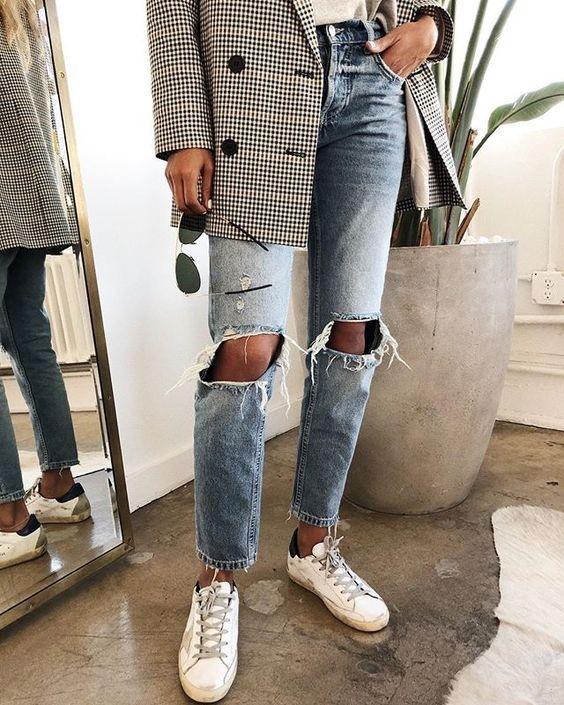 当然你可以换一条裤子,例如一条破洞牛仔裤就能平衡西装的正式感,现在谁还敢说西装只能在职场上穿呢?