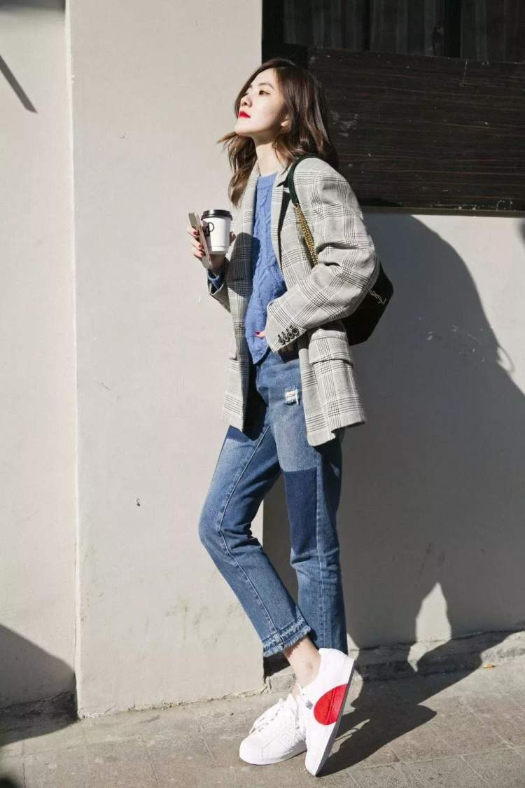 所以Anny还是给大家安利一套我们所有女生都能轻松hold住的2018开春最时髦搭配CP:格纹西装+牛仔裤!