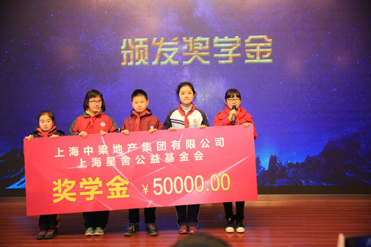 仪式上,来自华东师范大学第四附属中学、怒江中学、金沙江路小学、华东师范大学附属小学和华东师范大学附属外国语实验学校的50名优秀中小学生收到了“书香中梁”奖学金。