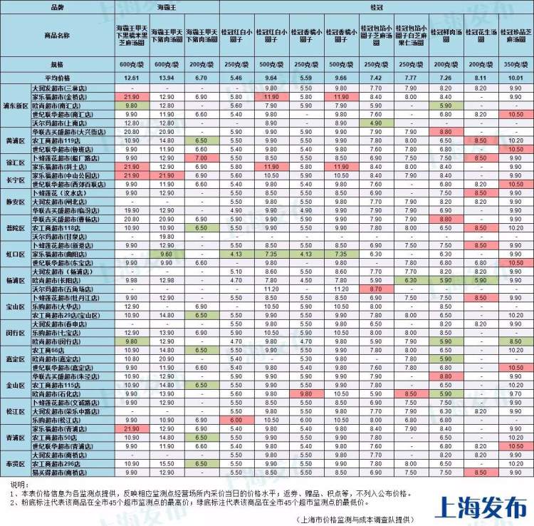 海霸王甲天下猪肉汤圆(600克/袋)在家乐福超市中山公园店售价为21.9元,在家乐福超市曲阳店售价为9.6元,差价达12.3元。