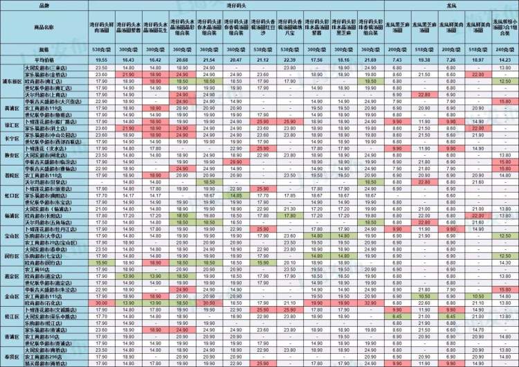龙凤黑芝麻汤圆(518克/袋)在沃尔玛超市上南店、甘泉店等售价为22.8元,在农工商超市115店售价为10.5元,差价达12.3元。
