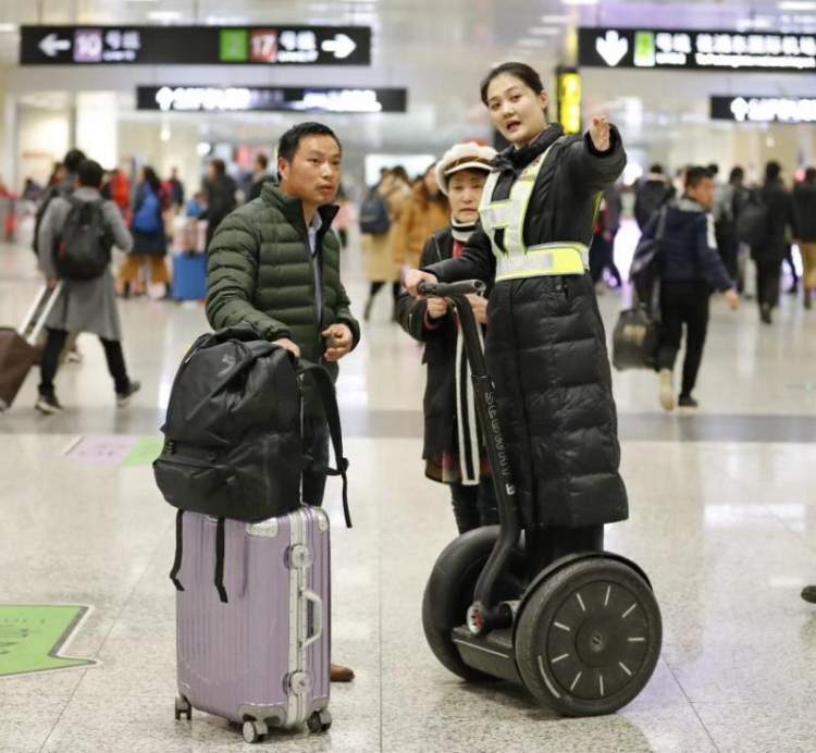“站厅太大了,服务窗口分布分散,距离远、亲和力不够,我站在双轮电动车上来回流动,让乘客容易发现我,我可以及时帮助乘客,为他们提供引导,这对及时疏散返城客流多少会有点效果。电动车取名‘小煜流星轮’。”高煜说。