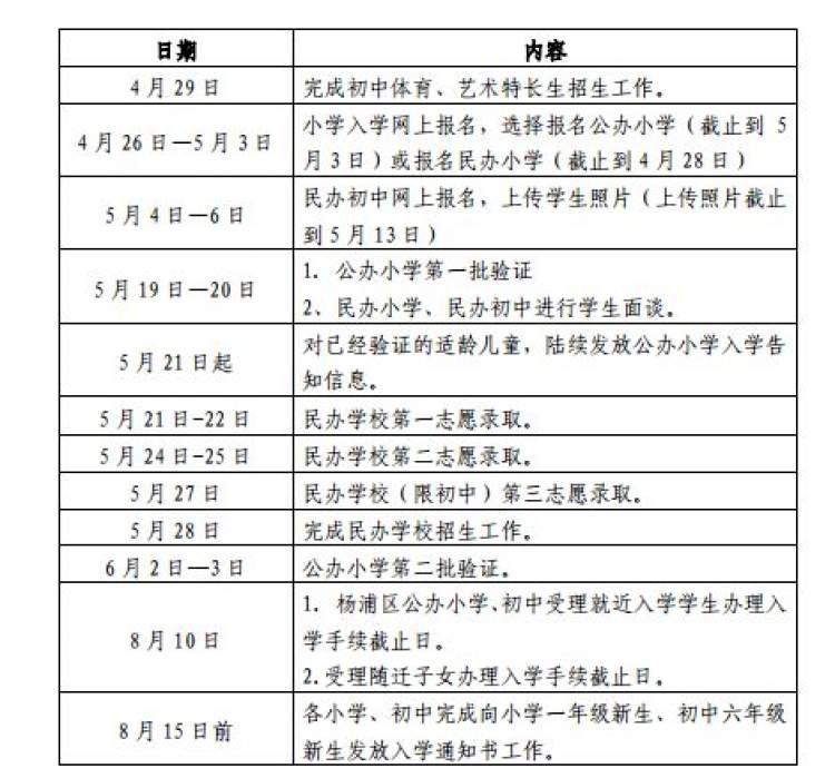 (一)小学毕业信息核对。4月2日—4月13日,各校有序组织小学五年级学生家长对“上海市义务教育入学报名系统”中的户口所在地住址、居住地地址等关键信息进行核对,并填写监护人手机号码(作为接收初中入学信息的联系方式)。如发现有关信息与实际情况不符的,家长应及时凭有效证件到学生就读小学进行更正。4月13日为本区小学五年级学生初中入学关键信息核对、更正截止日。