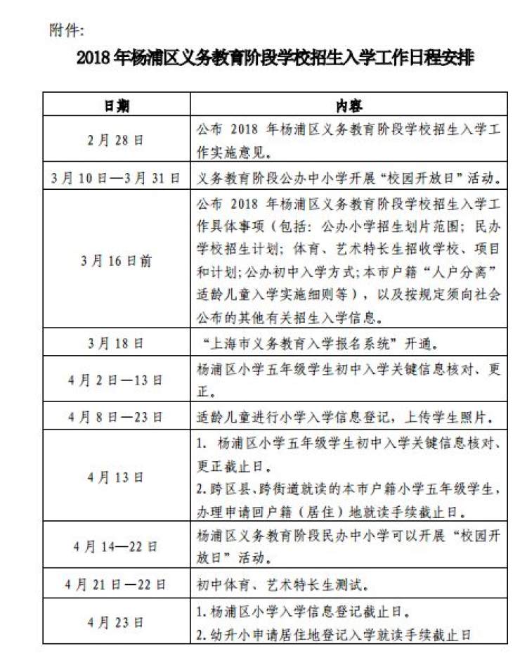 (1)《杨浦区教育局关于2018年义务教育阶段学校招生入学工作的实施意见》及配套实施细则。