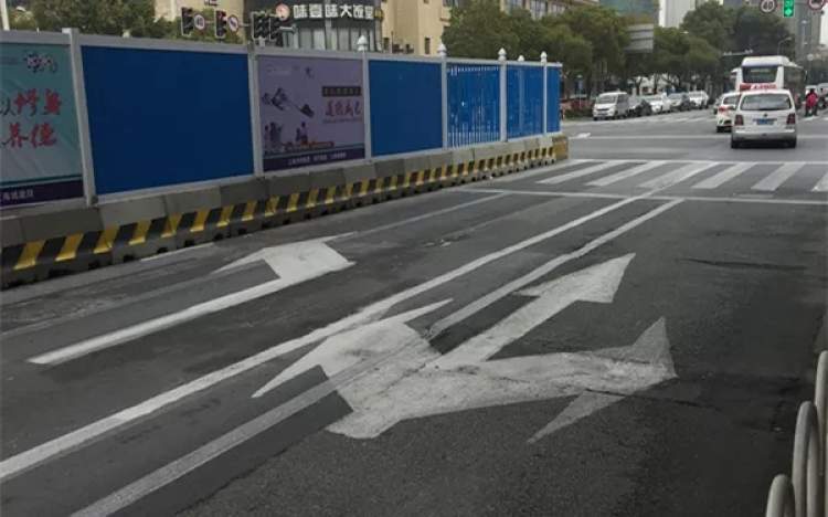 继续往前走地面标志再次出现了既能向左转又能向右转的指示,这次标志很清晰,看上去不像是重叠造成的,更重要的是两根车道之间划的是实线哦,当老司机在路口蒙圈然后变道的时候,罚单就在向你招手!针对这三根车道到底怎么走,网友们展开了“激烈”的讨论。