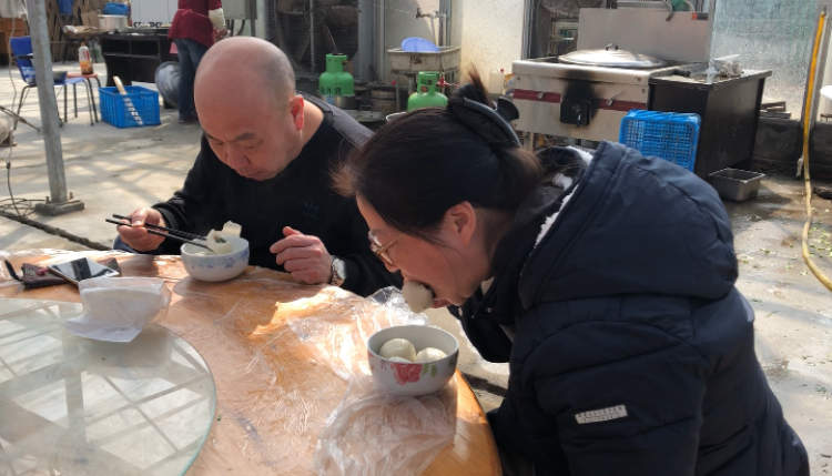 在电视上看到了书院镇余姚村特产这种马兰头馅儿的汤团后,爷叔就带着老伴从家里出发,一路开车到了这里,刚到就表明了来意,先来两碗马兰头汤团尝尝鲜!