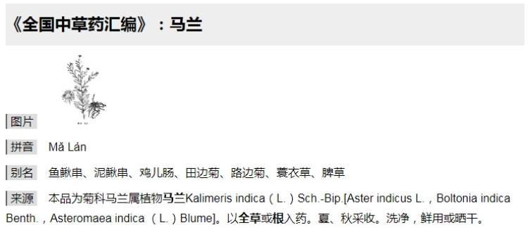 ■马兰头作为中草药被收录在《全国中草药汇编》中。/网络截图
